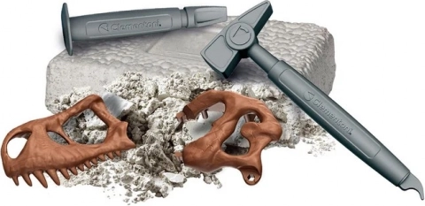 Ovaj zabavni i edukativni set djeci omogućuje doživljaj pravih arheoloških iskapanja. Iz gipsane cigle postupno će osloboditi dijelove lubanje T-rexa te ih potom sastaviti u impresivan model. Idealno za male istraživače i ljubitelje dinosaura.