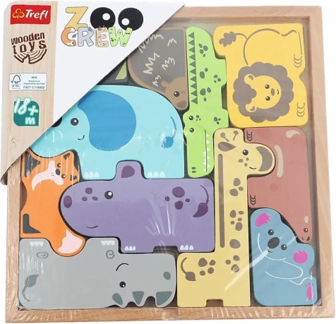 Otkrijte pametnu zabavu s drvenom glavolomnom slagalicom TREFL ZOO CREW. Čvrsti drveni dijelovi u obliku životinja odlično leže u dječjoj ruci, a zahvaljujući obrisima na dnu kutije djeca se lako uče ispravno slagati dijelove. Starija djeca i odrasli mogu povećati težinu prekrivanjem obrisa ili slaganjem svih dijelova u kvadrat izvan kutije.