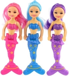 Lutka je dostupna u 3 kolor varijante (ružičasta, plava, ljubičasta) s detaljno ukrašenim repom i izražajnom kosom. Zahvaljujući veličini 15 cm lako stane u ruksak i idealna je za putovanja, za kadu i dječju sobu.