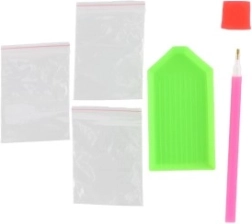 U pakiranju se nalazi sve što vam treba: platno s predtiskanom slikom i ljepljivim slojem, aplikacijsko pero, vosak, posudica i set obojenih kamenčića. Foliju s platna otkrivajte postupno, a kamenčiće prenosite pomoću pera s voskom točno na označena mjesta. Gotovu sliku možete jednostavno uokviriti i izložiti (okvir nije dio pakiranja).
