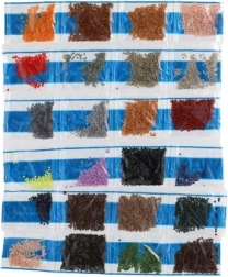 - Platno s predtiskanim motivom i ljepljivim slojem, aplikacijsko pero, posudica, vosak, set obojenih kamenčića, legenda simbola