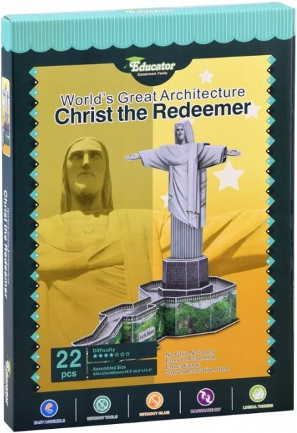 Otkrijte radost stvaranja uz 3D puzzle koje vjerno prikazuju slavni Kip Krista Otkupitelja iznad brazilskog grada Rio de Janeira. Zahvaljujući precizno izrezanim dijelovima od 3 mm pjene presvučene laminiranim tiskanim papirom dobit ćete čvrst i estetski model koji odlično izgleda u svakoj prostoriji.